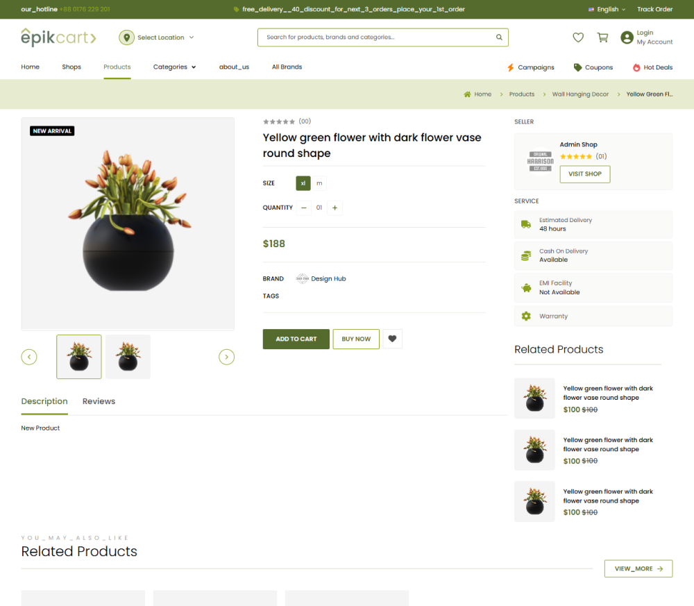 Epikcart is a feature-rich, scalable e-commerce platform tailored for large businesses. It features dynamic product filtering, multi-language support with RTL, advanced inventory management, order tracking, and refund systems, offering a comprehensive solution for multi-vendor operations.